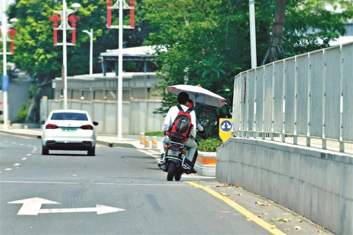 在福海街道稔田东路,有市民骑乘未备案电动二轮车。
