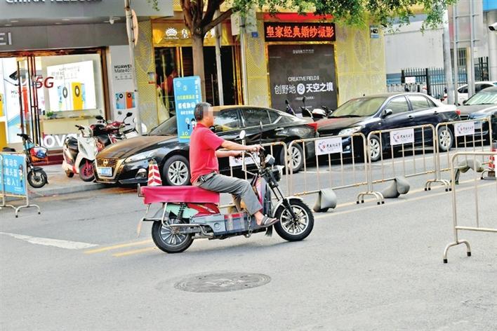 在新桥街道新桥社区,有市民未佩戴头盔骑行电动二轮车出入。