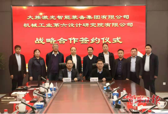 日前,大族激光智能装备集团与机械工业第六设计研究院有限公司(简称中机六院)签署战略合作协议,双方将充分发挥各自在规划设计、客户资源、技术创新等方面的优势,在智能工厂建设、装备制造、科技研发等领域开展全方位合作,实现协同增效。