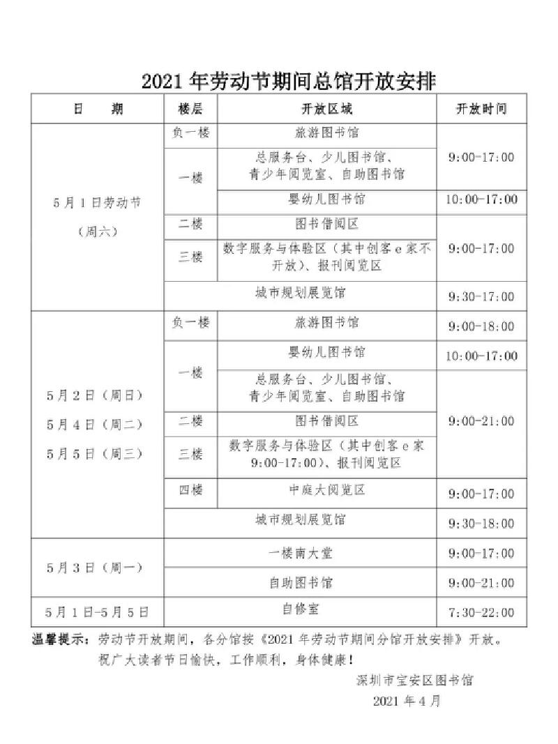 2021年劳动节期间宝安区图书馆