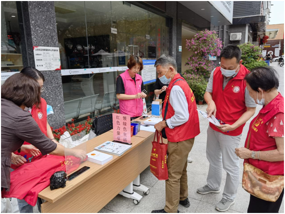 专题党课结束后,上合孝德先锋志愿者们与环卫工人集合领取清扫用具,分成2组深入辖区32、33区各个巷道开展五一节前绿色大清扫活动,认真清扫角落垃圾、落叶,铲除墙面乱张贴广告等。社区还通过摆摊设点宣传的方式,在党群服务中心门前向辖区居民派发生活垃圾分类管理条例、分类投放指引等宣传资料,派发社区定制的生活垃圾袋和垃圾桶,邀请居民参与垃圾分类小游戏,引导为绿色发展可持续发展积极作贡献。