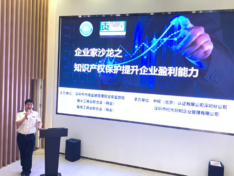 “企业家沙龙之知识产权管理及保护”系列交流活动是由深圳市市场监督管理局宝安监管局,福永、福海工商业联合会(商会)主办,每期都邀请商会会员企业负责人参加。首场活动邀请的主讲嘉宾杨勇是高级工程师、深圳市知识产权局专家库专家,2018年及2019年度深圳市专利奖评审专家,深圳市科技创新委专家库专家,深圳市人力资源保障局专家库专家,任多家大学的特聘教授。他通过案例分析、互动提问、视频赏析的形式,为参加活动的企业家讲解了“企业的知识产权保护是指什么”“企业的智力成果不进行知识产权保护有什么危害”“企业应该如何进行知识产权保护”“为什么企业知识产权保护好可以提升企业的盈利能力”等问题。