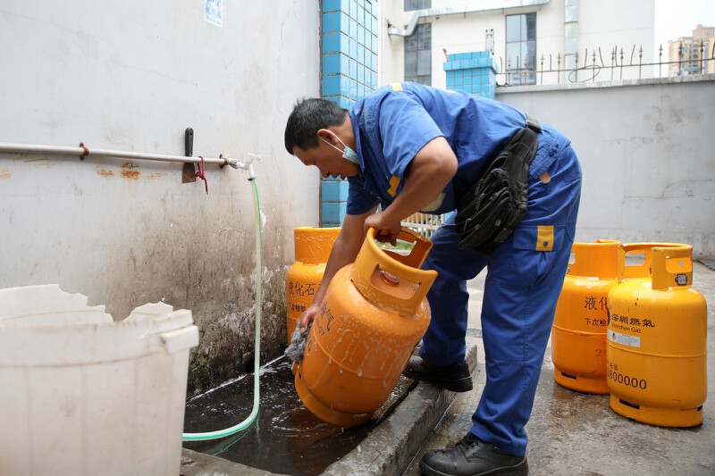中午12点多,是深燃宝城供应站是最忙碌的时候,送气师傅彭康旭满载气瓶匆匆出门,快1点,向兴河载着4瓶气回来,每瓶扫码后又打开水龙头,一瓶一瓶冲洗干净。饭早就打回来了,但是大家都还没顾上吃。“上午11点到下午2点是用气高峰,我们习惯都了晚点吃。”资已文说。他送了十几年的气,现在主要负责抢险维修工作,要24小时随时待命。“来深圳十几年就回去过了一个春节,我们这个行业越是节假日就越要坚守岗位。”他自豪地说,“虽然我们是送气工,但是肩上的责任可挺大。”