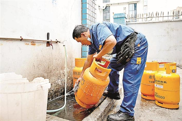 中午12点多,是深燃宝城供应站最忙碌的时候,送气师傅彭康旭满载气瓶匆匆出门。快1点钟,向兴河载着4个气瓶回来,扫码后又打开水龙头,把瓶身冲洗干净。饭早就打回来了,但是大家都没顾得上吃。“上午11点到下午2点是用气高峰,我们都习惯了晚点吃饭。”资已文说。他送了十几年的瓶装气,现在主要负责抢险维修工作,需24小时随时待命。“来深圳十几年就回去过了一个春节,我们这个行业越是节假日就越要坚守岗位。”他自豪地说,“虽然我们是送气工,但是肩上的责任可不小”。