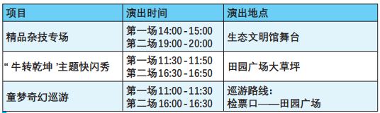 五一假期园区将举办舞台精品杂技专场、“牛转乾坤”主题快闪秀、童梦奇幻巡游等活动,具体安排如下: