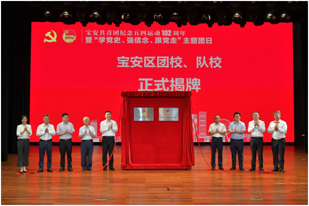 活动上,参加活动的领导为宝安区团校、中国少年先锋队宝安队校揭牌,共同见证我区构建党、团、队一体化培养社会主义建设者和接班人的教育培训体系。