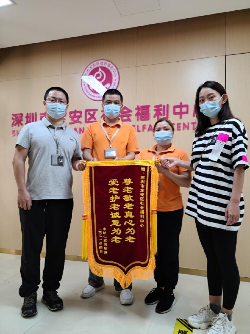 4月30日上午,在五一劳动节来临之际,宝安区社会福利中心(养老服务指导中心)工作人员收到一份特殊的“节日礼物”,入住长者李大爷的家属专程来到中心送上一面满怀感激之情的锦旗,对宝安区社会福利中心用心用情、细致专业的高质量护理服务表示衷心感谢。