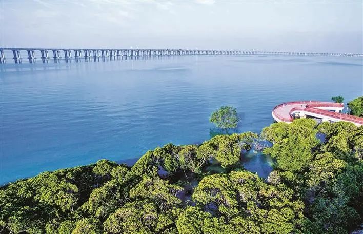 西湾红树林公园位于宝安西部海岸带中段,总长约4.9公里,是宝安西部活力海岸带的关键生态节点。项目以“多彩西湾,活力生活”为主题,以走近红树林为特色,集休闲、游憩、生态、科普于一体,为市民和游客提供了一个具有休闲、游憩、娱乐、生态等多功能的综合性公共场所。公园复原了代表本土优秀文化与历史的清代固戍码头、百年书屋绮云书苑、固戍碉楼、红家围等历史风貌;修建了红树广场、南昌镜湖、云帆桥等特色景点。
