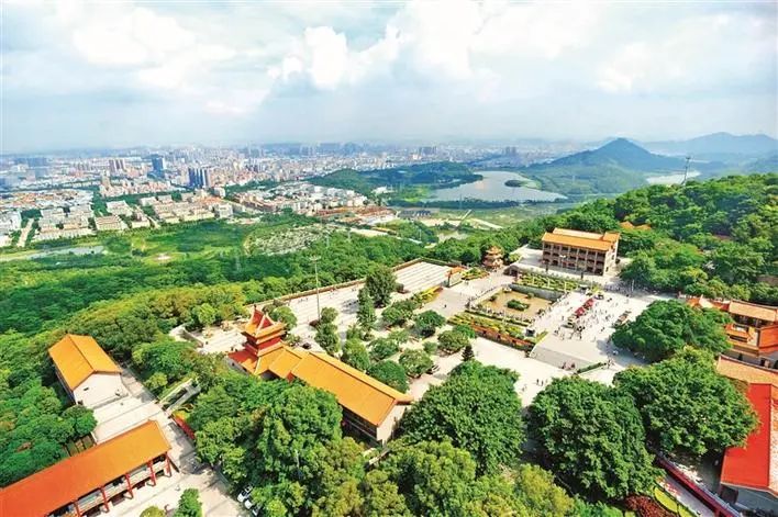 石岩阳台山登山广场面积约3万平方米,由前广场、莲花广场、莲花池、生态园,以及广场两侧的苏派建筑和游廊、登山爬山廊组成。