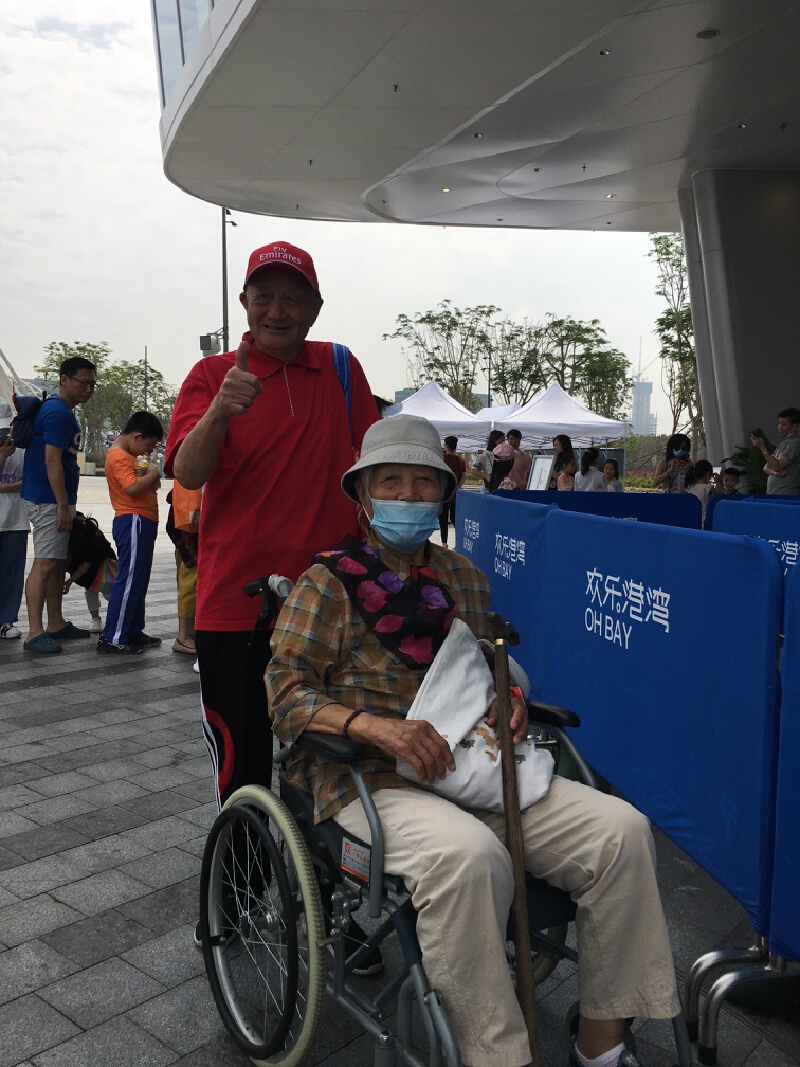记者在摩天轮下采访了来自福田区的一家人。孙爷爷今年90岁,其老伴儿王奶奶88岁,今天一大早,两位老人就在女儿的陪伴下从福田家里出发,直奔欢乐港湾摩天轮下。孙女士告诉记者,听说宝安欢乐港湾的摩天轮现代感十足,早就想带老人家来逛逛玩玩,平日里家人都忙也没时间带老人出门,赶着“五一”假期有空,提前就安排了今天的行程。在购票时孙女士还惊喜地发现,年满80岁的老人可以享受半价优惠。