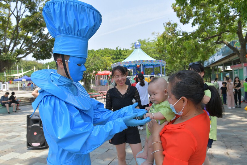 今天上午亮相园区的“牛转乾坤”主题快闪秀和童梦奇幻巡游吸引了不少游客围观,“牛转乾坤”主题快闪秀以当下最流行的国潮为主要元素,将传统的杂技节目和新潮前卫的街舞融于一体。由青蛙王子与公主及摩登人偶组成的童梦奇幻巡游队伍与游客亲密互动、合影,令现场的小朋友们兴奋不已。值得一提的是,“五一”期间园区特邀宝安区福永杂技艺术团进行精品杂技演出,为游客带来不一样的视觉盛宴。“相比以前,今年海上田园的活动多了不少,好玩的东西也越来越多了,节日氛围特别好。”市民张女士一家三口坐在树荫下欣赏演出,十分惬意。