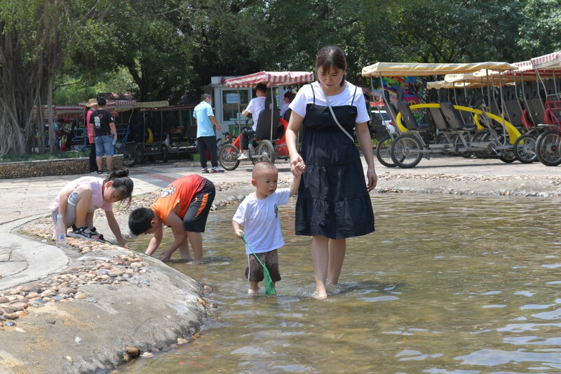 今天是“五一”假期第一天,上午11点,海上田园旅游区便已游人如织,节日氛围十分浓郁。“五一”期间,海上田园旅游区开展了为期五日的“牛转乾坤”主题快闪秀、童梦奇幻巡游和精品杂技专场演出,此外,碰碰车、捉泥鳅、田园趣味运动会、网红摇摆桥、捕鱼达人等活动也人气颇高,不少家长和孩子共同嬉戏,场面十分温馨。