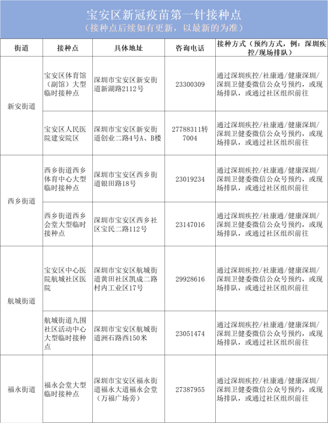 好消息、好消息,宝安区新冠疫苗第二针指定接种点增多了,全区10街道共有51个。