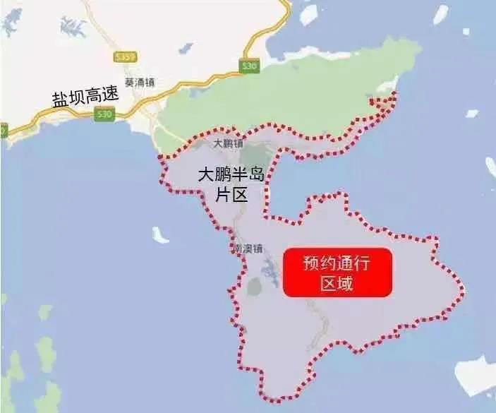 5月1日起至10月8日期间所有节假日,9座及以下小型客车前往大鹏半岛需预约通行。具体管制路段为:迭福山隧道以南(含迭福山隧道)大鹏新区所有道路。