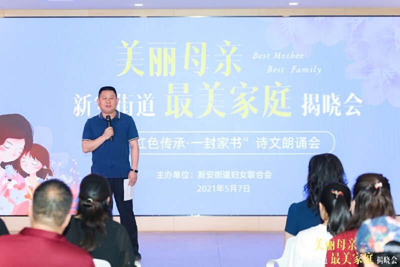 “立足本职工作,发挥专业精神,着力提高养老服务水平,朝着建设‘老有颐养’,打造民生幸福样板城区的目标,做出新的贡献”“只有每个人都奉献一点爱,家才会更温暖,只有每个家庭都幸福了,我们的社会才会更和谐,我们的国家才会更稳定”……活动现场,新安街道“美丽母亲”代表何惠玲、“最美家庭”代表蒋雷走到聚光灯前,分享心得感悟。