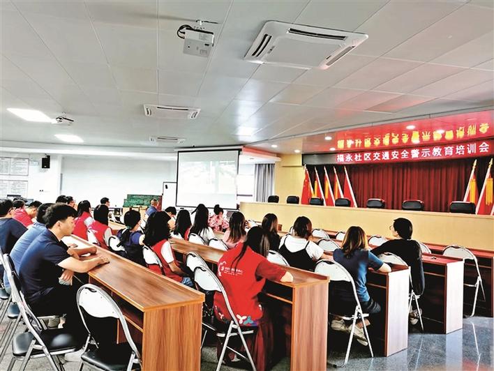 福永街道组织全员观看学习交通安全警示教育片。