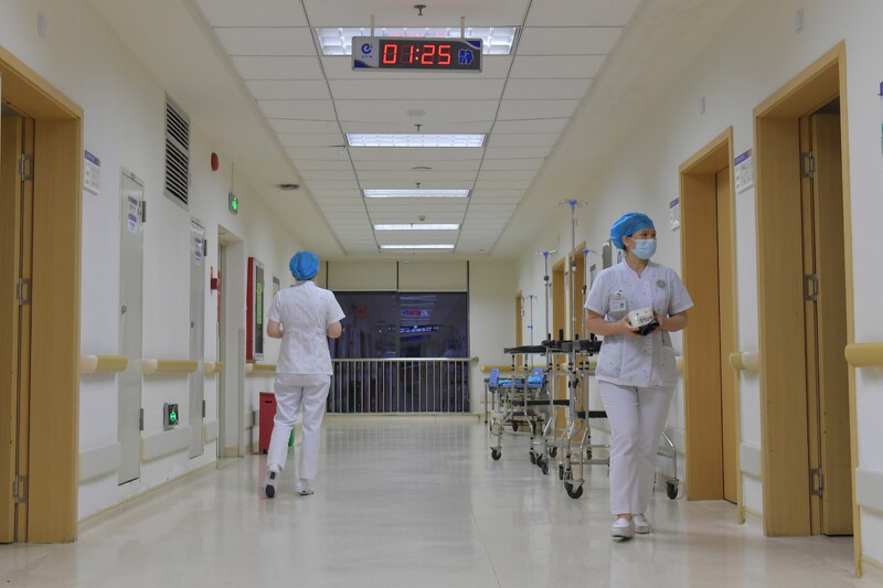 ▲凌晨1点25分,宝安区中心医院普外科的两位护士穿梭在走廊间,逐一查房。