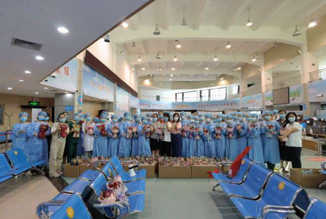 5月12日是国际护士节,新安街道妇联在街道党工委、办事处的具体指导下,近期走访慰问了宝安体育馆副馆新冠疫苗接种点及宝民社康、安乐社康、海富社康等9个社康中心的护士们,以一束束鲜花致敬默默奉献在岗位上的白衣天使,及时传递“娘家人”的关爱,把街道党工委、办事处的关心和祝福送到她们身边。