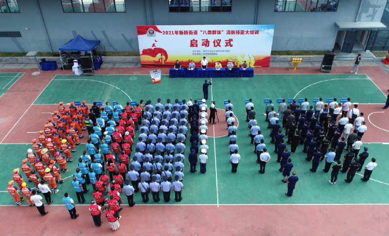 当天,新桥街道党工委副书记、办事处主任李永峰现场宣布启动2021年新桥街道“八类群体”消防技能大培训。“大家的消防安全意识、消防安全四个能力强不强、高不高,直接决定消防安全‘防火墙’工程筑得牢不牢。”街道办事处副主任王少雄动员说。“你们就是离初起火灾最近的人。每一次火情的发生,能不能达到把火情灭小、灭早、灭初期,就看能不能通过培训来熟练掌握应急处置能力,并运用在实战当中去。”