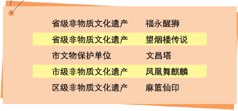 福永在做好文物保护工作之余,还特别注重挖掘当地的民俗文化和非物质文化遗产,推动“福永醒狮”和“望烟楼传说”先后被评为省级非物质文化遗产。伫立在凤凰山顶的望烟楼承载着文天祥侄孙文应麟乐善好施、关心人民疾苦的良好家风,“望烟楼传说”至今仍是佳话。作为醒狮之乡的福永每年都举办各类醒狮演出和赛事,今年,福永还将承办中华龙狮大赛深圳宝安站,届时,全国各地的龙狮精英将齐聚文化福永,展示龙狮魅力。