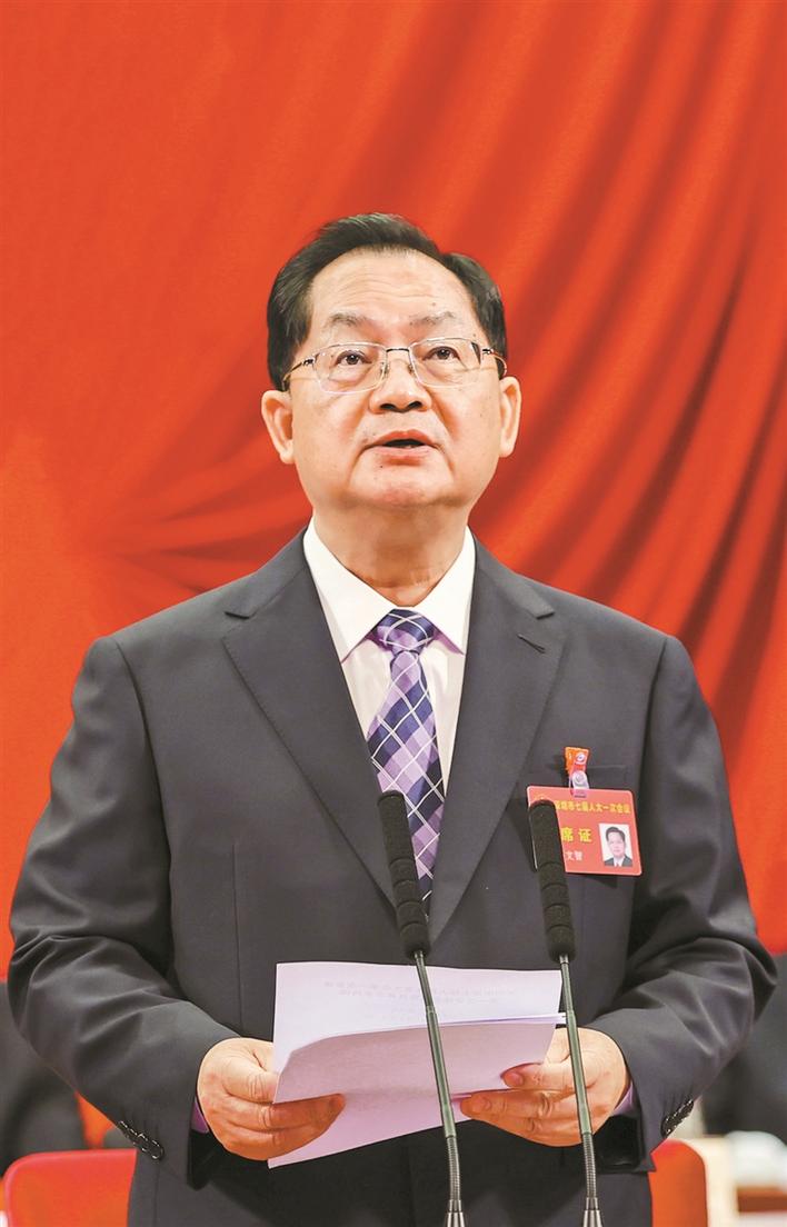 根据会议议程,深圳市人民政府副市长、代理市长覃伟中向大会作政府工作报告。他的报告分为三部分,一、“十三五”时期发展成就;二、“十四五”时期发展目标和重点任务;三、2021年工作安排。