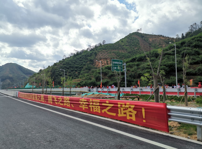 凌妡童通过电商直播,已吸引了近20万粉丝关注,但不便的交通曾经困扰过她。听说云茂高速即将通车,她开心地说道:“通过云茂高速,我们的农产品能更好更快地走出大山,也会吸引更多的开发商到钱排投资,以后的生活是越来越好了!”果农们还特意制作悬挂了条横幅,上面写着“云茂高速,助力钱排三华李香飘四海”。