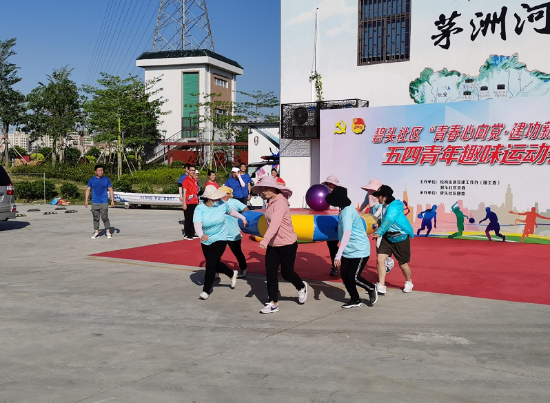 5月16日下午,松岗街道碧头社区“青春心向党,建功新时代”五四青年趣味运动会在茅洲河流域毗邻党建党群服务中心举行,碧头社区团员青年代表80人参加。