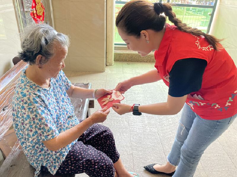 ▲社工为长者送上生日贺卡。