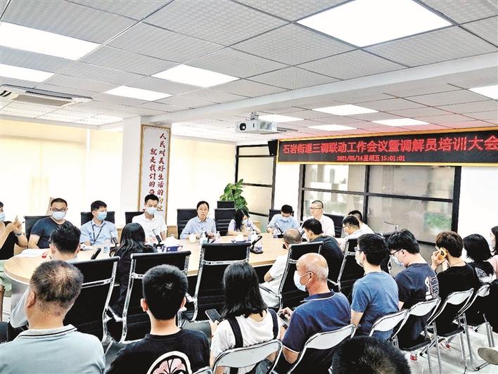 石岩街道三调联动工作会议暨调解员培训大会现场。