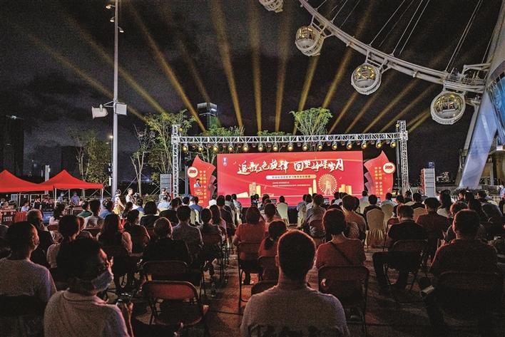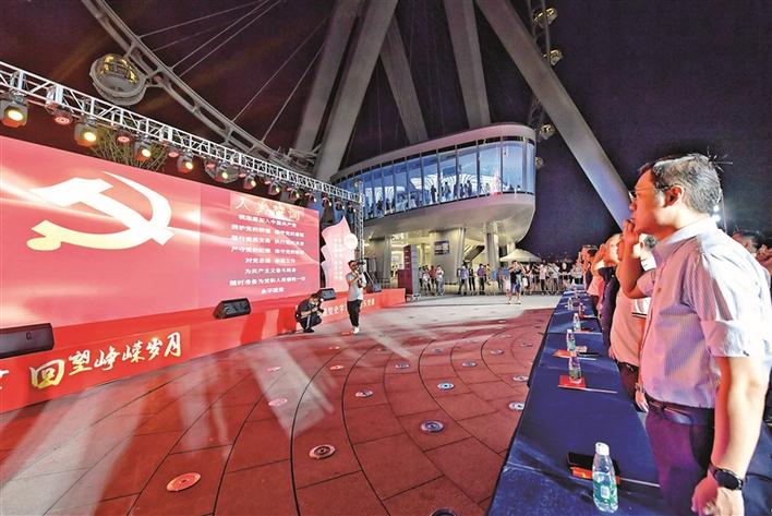 宝安湾畔,摩天轮下,鲜艳的党旗汇聚起强大的奋进合力。5月18日晚上7点半,新安街道在欢乐港湾创新开展党史学习教育音乐党课,新安200多名党员重温入党誓词,伴随着音乐学习党史,挥舞国旗共同唱响《我和我的祖国》。