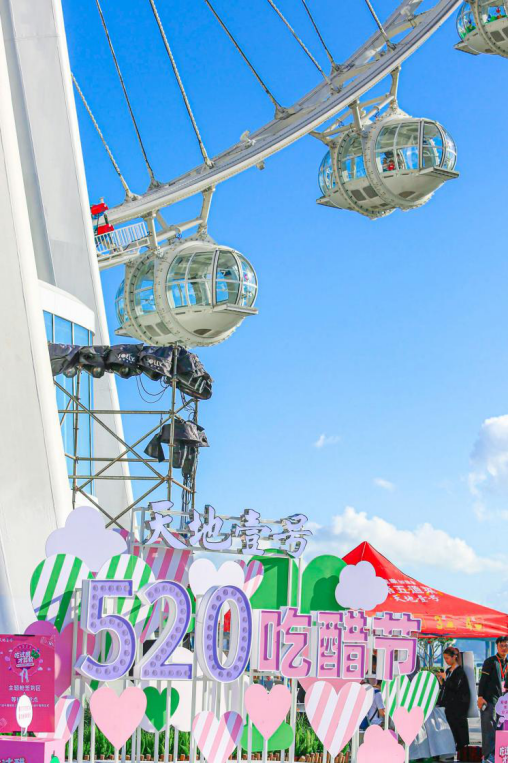 深圳“湾区之光”摩天轮,是亚洲最大、世界第四大摩天轮,俨然成为大湾区的全新城市地标。5月21日,国内醋饮料龙头企业天地壹号,包场湾区之光摩天轮举办“天空之恋”主题活动,为广大情侣制造浪漫表白机会。“我的朋友圈算是被参加活动的情侣霸屏了,都在晒吃醋、喝醋,仪式感十足。”深圳白领阿清接受记者采访时说,很是羡慕这些情侣,希望自己以后也有机会参加。