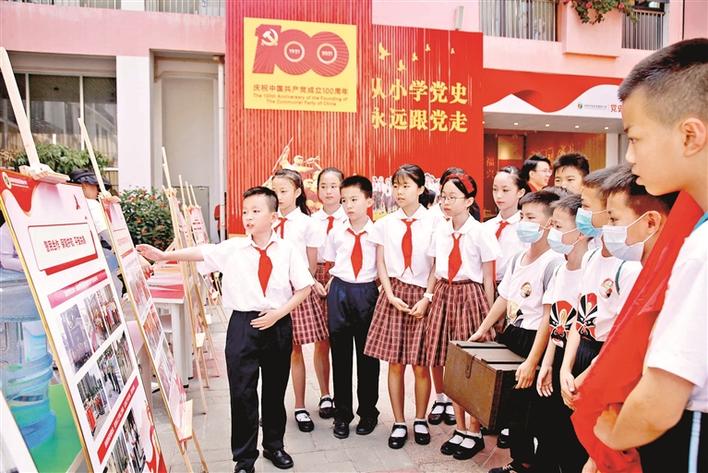 适逢中国共产党成立100周年,为推动党史学习教育进校园,引导青少年学生知史爱党、知史爱国,根据宝安区委党史学习教育领导小组统一部署,区委教育工委积极推进党史学习新阵地建设。迄今为止,全区中小学均已完成党史学习教育室建设,壆岗小学、燕山学校等成为其中的典型代表。