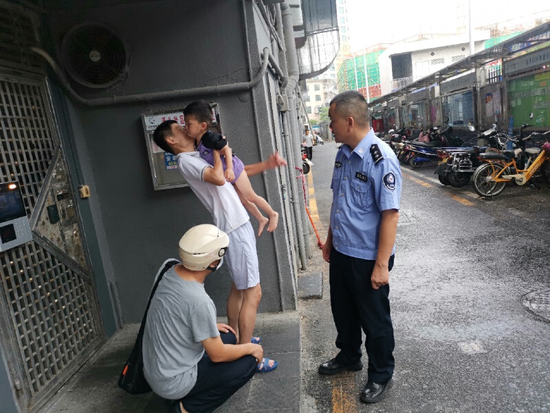 5月25日早上,溪头网格巡查中队陈朗志和张世平在上班的路上,看到一个没穿裤子、光着脚丫子的小男孩站在马路中央嚎啕大哭。小男孩大约2岁,上前询问他却说不清楚父母姓名、电话、住址等有用的信息。询问周边的住户也表示不认识。网格员根据孩子的穿着推测其应该就住在附近。经过仔细回忆,杨华依稀记得小孩租住在附近的146号楼。随后,核对采集到租住人员信息资料,很快就联系上其父母,几名网格员把小男孩安全送到了其父母手里。据了解,小男孩是睡醒后自个儿跑了出来。