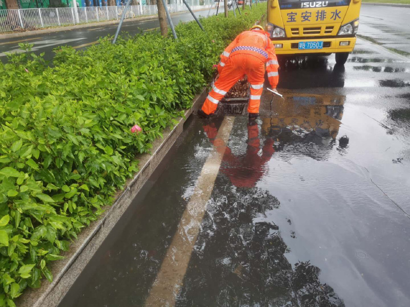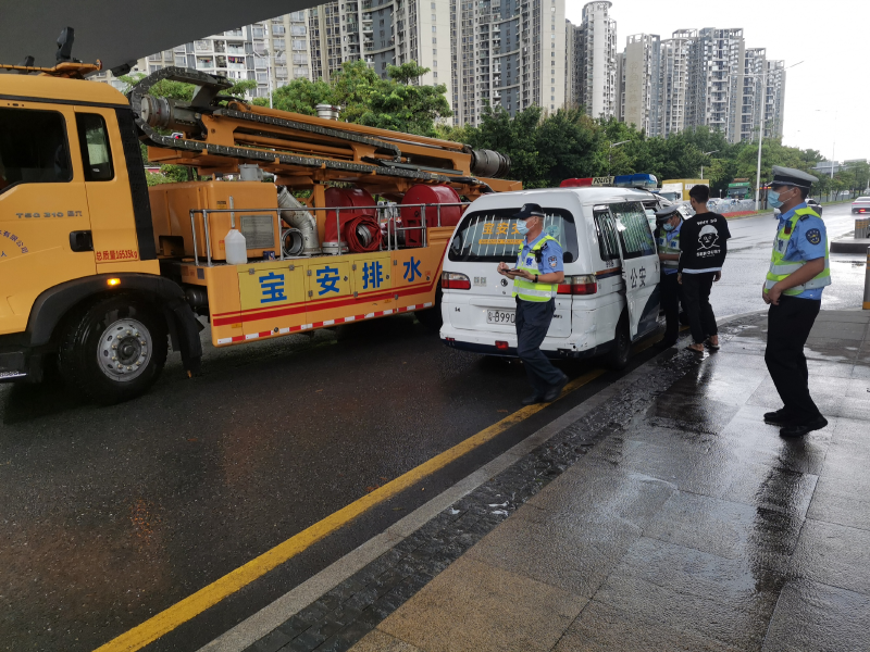 宝安排水有限公司与交警、街道办多方联动,保障宝安区主干道畅通。
