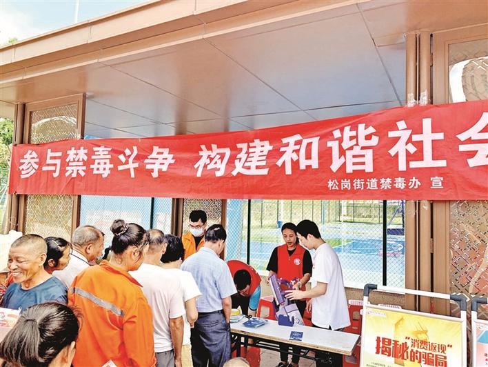 5月24日,松岗街道禁毒办联合沙浦社区工作站组织禁毒社工、社区治保主任在社区文化公园开展禁毒宣传进社区活动。