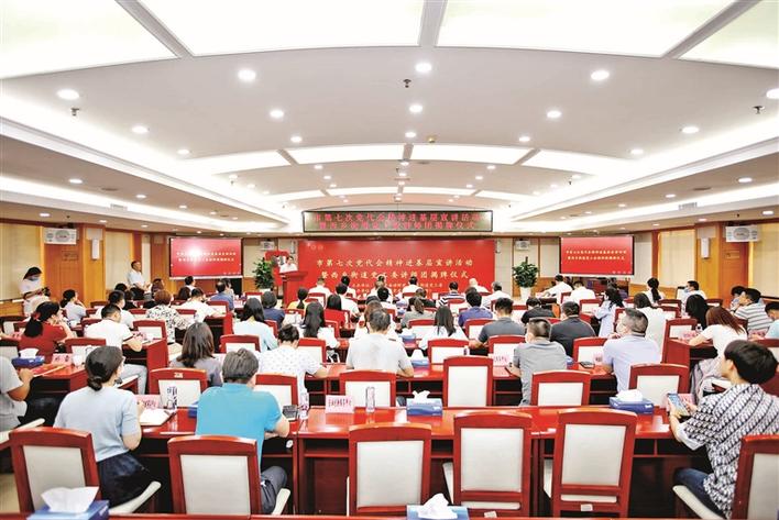 宣讲百年辉煌党史,汲取奋进磅礴力量。5月26日,深圳市第七次党代会精神进基层宣讲活动暨西乡街道党工委讲师团揭牌仪式举行。深圳市委宣传部二级巡视员、深圳创新创意设计发展办公室主任韩望喜,市委讲师团团长、《文化深圳》主编史学正,市委党史文献研究室(市地方志办)文献处处长、副研究员詹延钦,宝安区委宣传部副部长易春雷等出席活动。