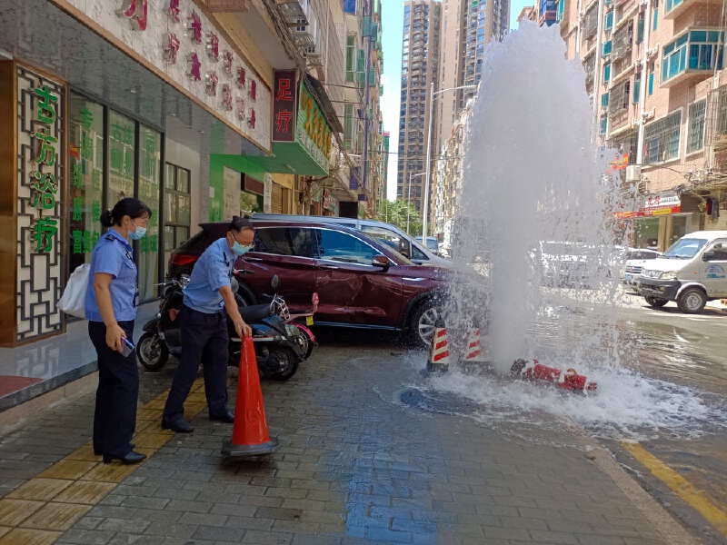 5月26日,松岗街道一处市政消防栓被车撞裂,现场喷出三四米多高水花,宛若“喷泉”。一线网格员巡查时发现后,第一时间联系维修人员赶来抢修,受到辖区群众点赞。