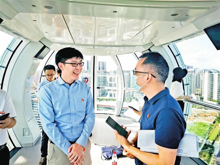作为深圳又一打卡地标,宝安滨海文化公园内坐落着深圳首座巨型摩天轮——湾区之光和多功能剧场的演艺中心——湾区之声。在这里,科技工作者坐上128米高摩天轮,俯瞰海、天、城交相辉映的壮丽图景,体验城区发展品质显著提升的无限魅力。“这真是特别难忘的一天!”在摩天轮缓缓上升中,华测检测认证集团股份有限公司副总裁王在彬感慨万分,他表示,华测检测是宝安土生土长的企业,如今看到宝安建设得如此好,更加坚定了公司立足宝安发展的信心。