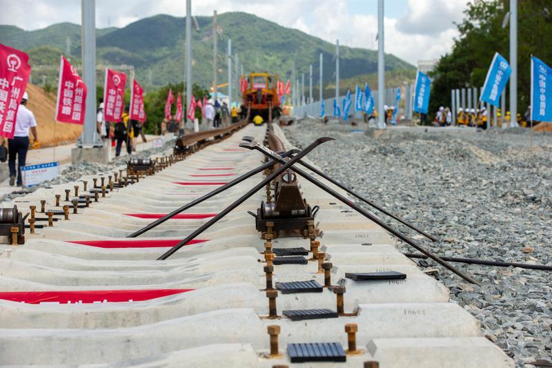 昨天,随着最后一组500米长轨铺设完成,赣深高铁广东段铺轨接入深圳北站,至此赣深高铁广东段正线铺轨已完成80%。据悉,赣深高铁铺轨预计6月中上旬全部完成,年底建成通车。届时,赣州至深圳的通行时间将由现在的7小时缩短至2小时。