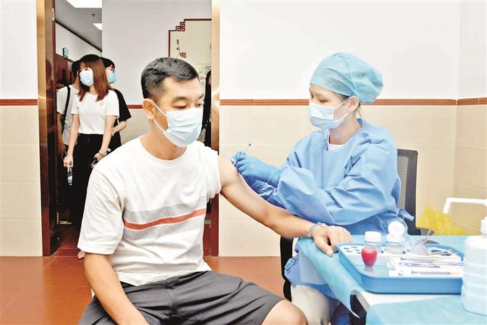 医护人员为市民接种新冠疫苗。