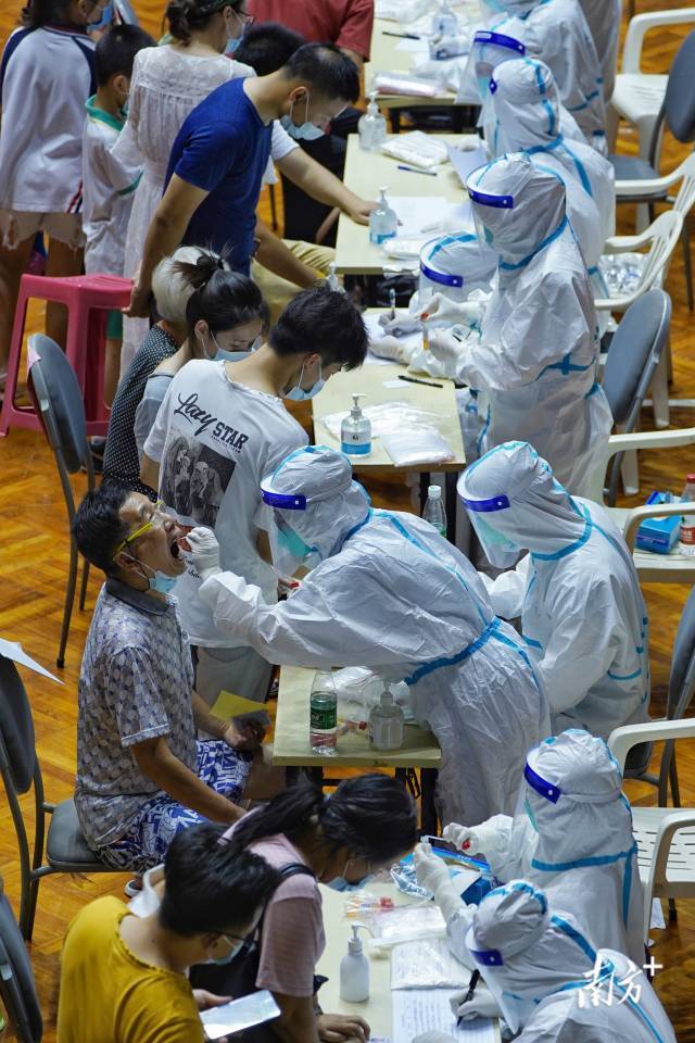 在深圳,自“5·21”疫情发生以来,多区域紧急开展核酸检测,医护人员迅速响应,支援深圳各区开展核酸检测采样。
