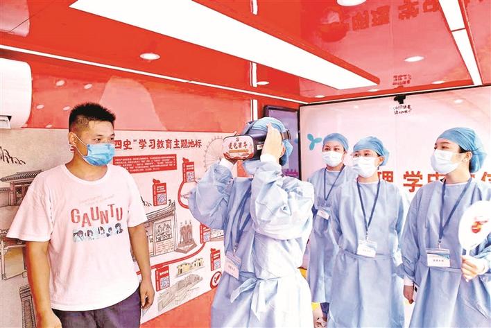 医护人员通过“红色干线初心号”互动体验设备学习党史。