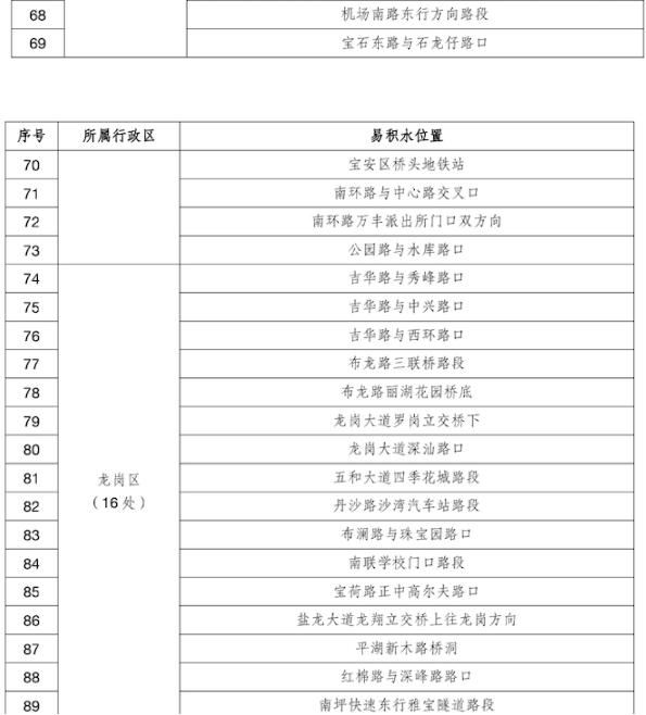 道路方面,预计龙舟水期间早高峰时段龙华区福龙路、龙华区玉龙路,晚高峰时段福田区香蜜湖路、福田区滨河大道等路段道路运行压力有所上升,预计通行时长将多花费60%-90%。