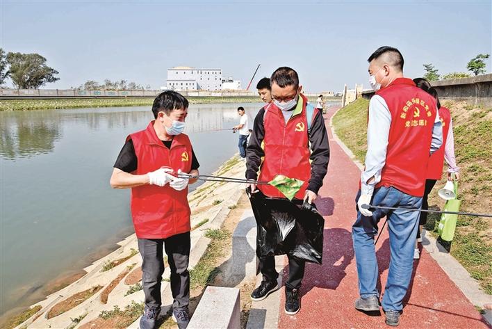 园区党委组织党员志愿者清理垃圾。