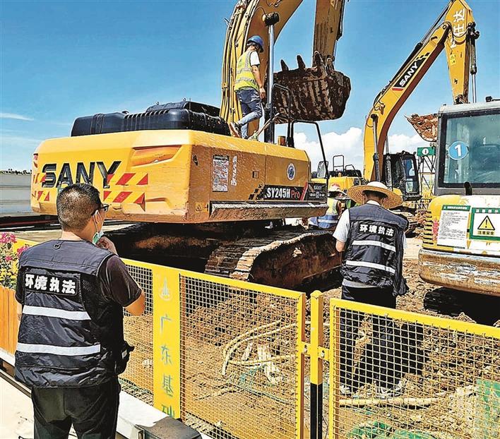 执法人员核查非道路移动机械油品。