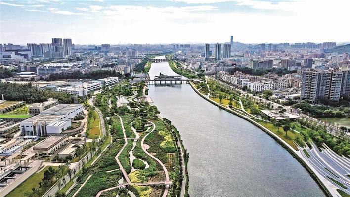 如今的茅洲河宝安段水清岸绿。