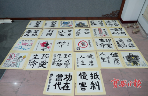 线上,新桥街道禁毒办充分利用各微信群、朋友圈、视频号和抖音等平台发布作品征集消息,居民群众热烈响应;线下,做好防疫工作的同时,走进“一墨堂”开展禁毒书画创作活动。禁毒社工先以课件、视频等形式向在场的孩子们讲解毒品的种类及其危害。随后,邀请他们上台近距离地观察毒品的外观特征,以加深其对禁毒知识的理解。活动正式开始,孩子们凝神纸上,以笔为枪,以墨为弹,挥毫战毒魔,他们以自己独特的视角,创作出一幅幅优秀的书画作品向毒品说“不”。