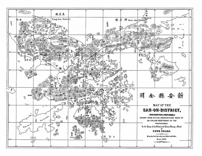 1860年,经广州天主教的同意,香港的天主教将传教地域扩展至新安县的大部分,包括大埔、元朗、南头等。根据《天主教香港教区大事记》记载:“1860-1861年香港监牧区的范围扩大包括差不多整个新安县。”也就在这时,意大利天主教传教士和神甫走遍了新安县全境,并于1866年绘制出了《新安县全图》。