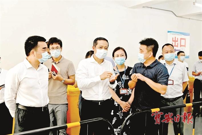 下午,姚任与李懿按照“四不两直”要求,到松岗、沙井督导检查核酸采样工作。松岗街道楼岗社区智汇百盛家园广场的临时核酸采样点专门开辟了老幼专用通道,为老人、幼儿等群体优先服务,深受市民肯定。姚任现场检查了采样流程,听取了解松岗街道核酸采样总体情况和相关创新做法,要求全区各采样点结合实际情况推广设置专用通道的做法,并且要优化现场设施、做好组织引导,确保现场排队间隔合理、采样高效有序。