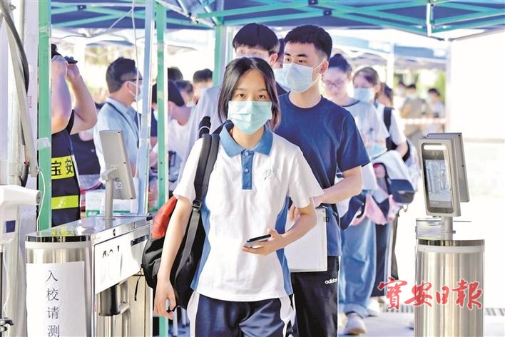广东省2021年高考昨日9时正式开考。在教育、卫健、公安、保密、供电等多部门联动保障下,宝安8大考点秩序井然。区委常委、常务副区长蔡英权到宝安中学(集团)高中部考点巡考,并慰问考务人员。